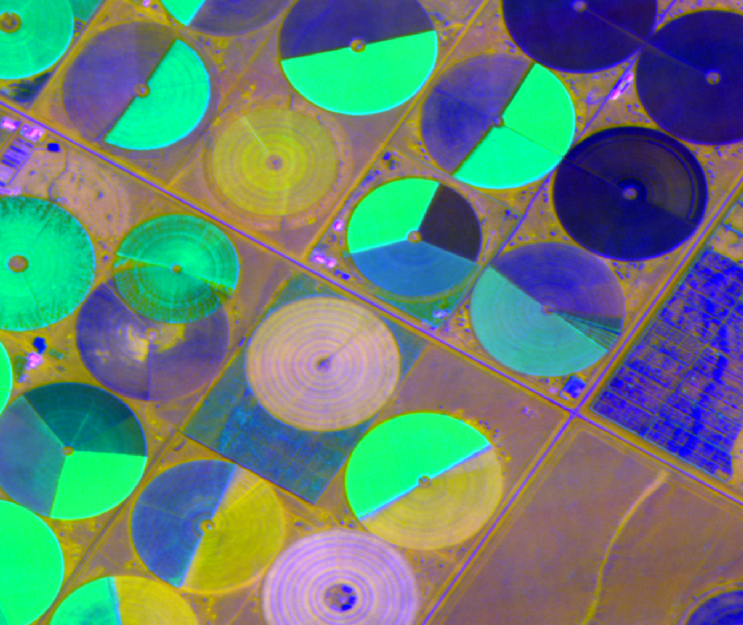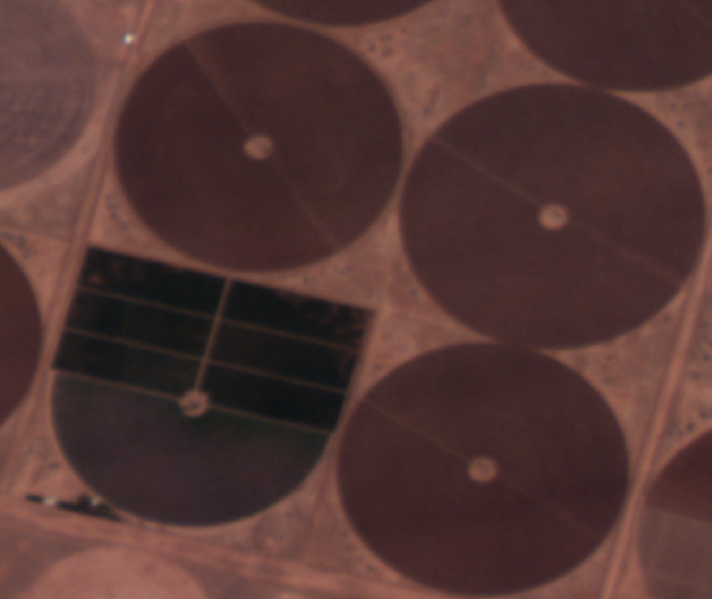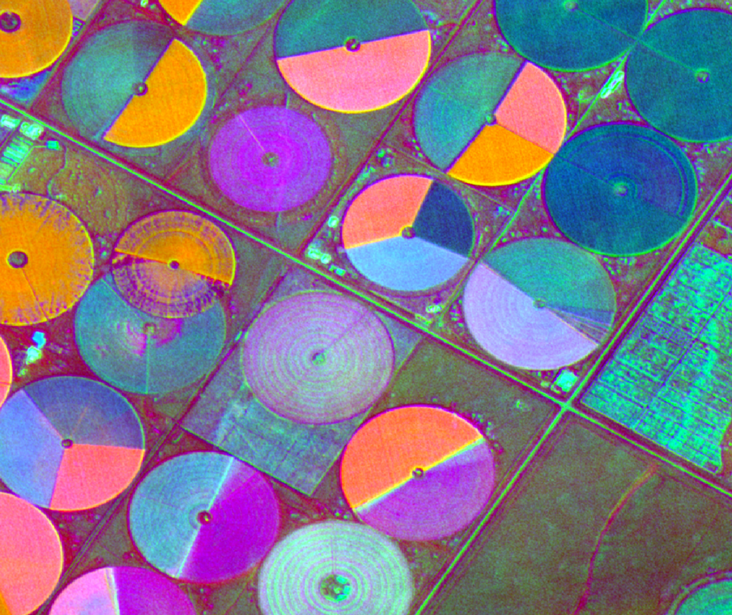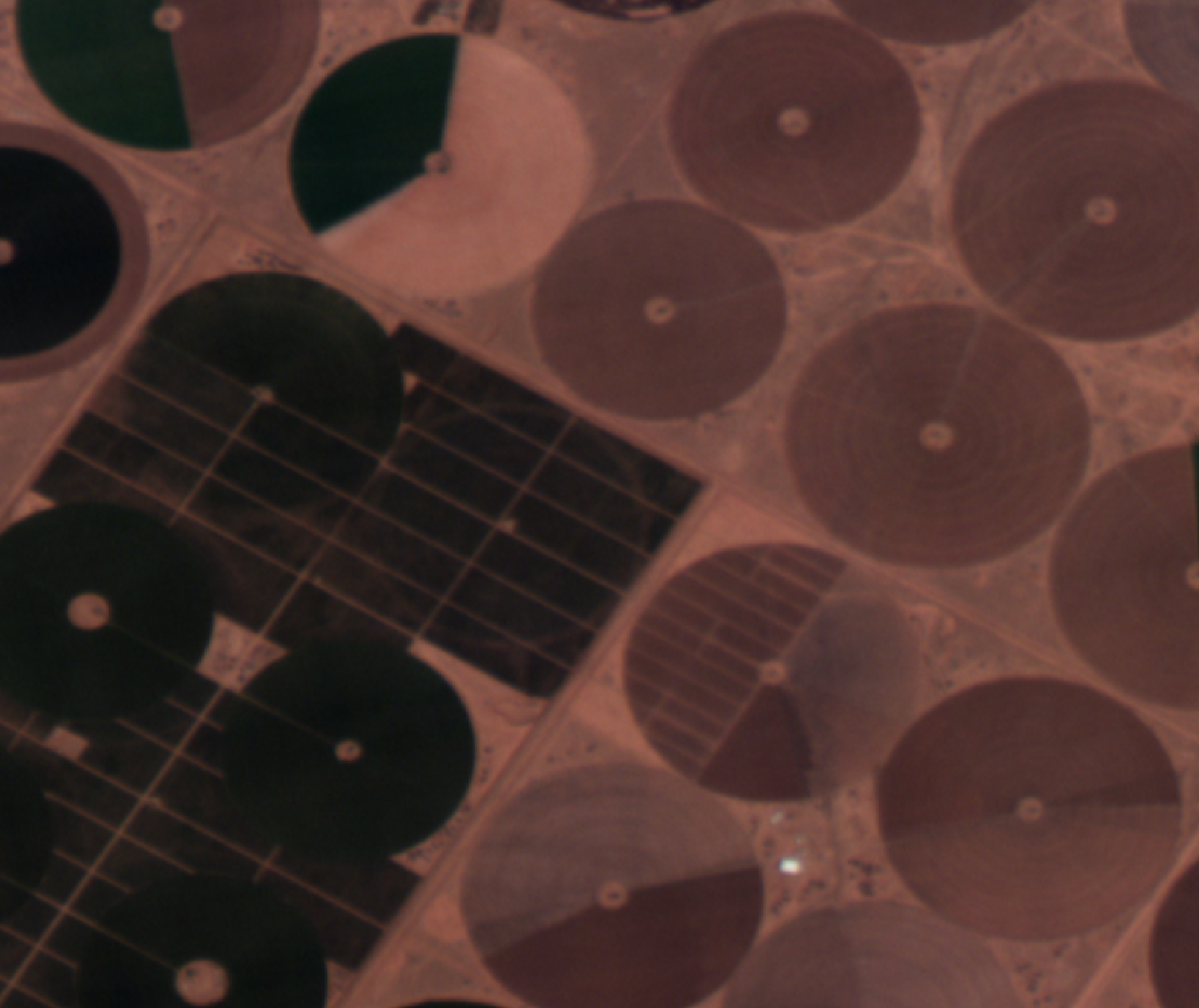 Image of Saudi Arabia agriculture: Natural colour on left, 3-band PCA on right